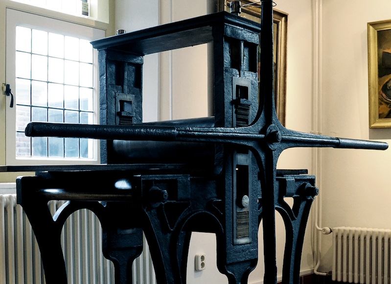 Schijndel - Jan Heesters was in zijn jonge jaren al een kundig etser en heeft speciaal voor zijn atelier een etspers uit Parijs naar de Pompstraat laten komen. Deze antieke gietijzeren pers staat nog steeds in het museum en is een waar pronkstuk.