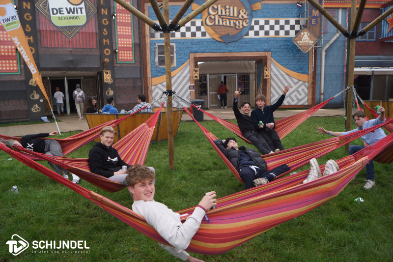 Schijndel - De camping van Paaspop, Paradise City. Een bruisend paradijs waar ook flink gefeest is de afgelopen dagen. Als Paaspop de deuren sloot, gingen bij Paradise City de deuren van de Silent Disco open en kon er daar worden doorgefeest tot in de vroege uurtjes. Het zwembad is vervangen door de Paradise City Playground. En bij Basic Fit kon de sixpack van de bezoekers bijgehouden worden. ![]() |