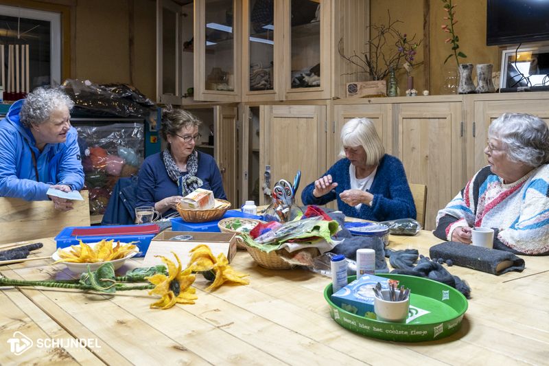 Deze groep maakt vooral bloemen van vilt. Daarbij volgen ze de seizoenen. Ze werken zowel met natvilt als met de naaldviltmethode en proberen de bloemen zo levensecht en natuurlijk mogelijk te maken. TVSchijndel nam een kijkje en maakte er mooie reportage van. Meer foto's zie je in ons fotoboek.