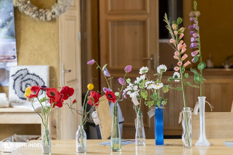 Ze zijn altijd op zoek naar de juiste kleuren en onderzoeken nieuwe mogelijkheden. De bloemen worden verkocht door en de opbrengst is voor stichting de Schaapskooi. Ook op maandag- en vrijdagochtend zijn er vrijwilligers werkzaam in het wolatelier. Zij gebruiken andere technieken o.a. spinnen, weven, breien et cetera.