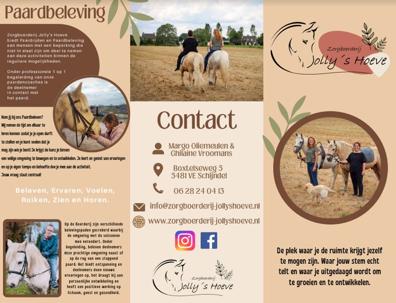 Afgelopen jaar zijn ze gestart met paardbeleving, op of naast het paard, voor mensen met een verstandelijke/lichamelijke beperking. Vanaf juni gaat de dagbesteding open. Deze is ondersteunend aan de paardbelevingsactiviteiten, de verzorging van de pony’s en het onderhouden van het terrein. (foto's: Ghislaine Vroomans)