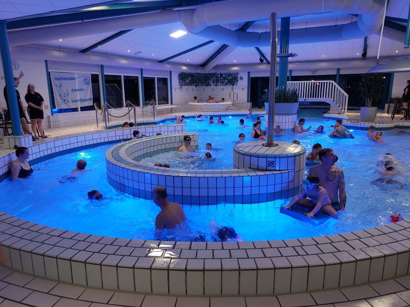 Vrijdagavond werd de zwem4daagse afgesloten met een spetterend feest, compleet met disco en danswedstrijd, waarbij mooie prijzen te winnen waren. Dit was alvast een voorproefje voor volgend jaar, want dan wordt de 50e Schijndelse Zwem4daagse georganiseerd, een feest wat je niet mag missen. Bijna honderd deelnemers zwommen voor de eerste keer 10 of 20 banen per dag en ontvingen de bronzen medaille. Zestig zwemmers deden voor de tweede keer mee en kregen een zilver medaille, terwijl er 54 deelnemers goud ontvingen. Maar liefst 28 zwemmers hebben al meer dan tien keer mee gedaan. Mooi om te zien dat zwemmers ieder jaar terugkeren, met hun kinderen en kleinkinderen, want dat zwemmen een sport is die tot op latere leeftijd beoefend kan worden, werd wel aangetoond door het feit dat er ook verschillende deelnemers waren die de 70 jaar inmiddels gepasseerd zijn.
