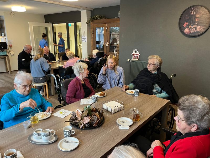 Schijndel - Maandag ochtend 16 december zijn Lynn, Janne en Jente (leerlingen van het Elde College) bij Laverhof geweest om samen met de bewoners taart te eten. Van waar dit initiatief? De dames volgen op school de Ondernemersklas, dit is onderdeel van het vak Bedrijfseconomie.