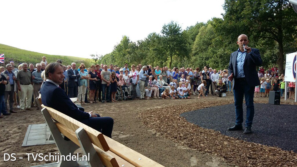 Schijndel - Het speelmonument Spitfire op de Vlagheide is gisteren officieel geopend. Daarmee is de Spitfire terugkeerd op de Vlagheide waar ze in 1945 gedurende korte tijd opstegen en landden. Het was een zeer bijzondere opening op de Vlagheide in Schijndel. Honderden mensen waren naar camping Het Goeie Leven gekomen om van daaruit in defilé naar de locatie van het monument te wandelen. Veteraan Leo Hendrikx (92), oud Spitfire RAF-piloot en Engelandsvader, en Schijndelaar Theo Jansen, schrijver van het boek 'B.85 Schijndel Het vliegveld van Schijndel' (2012), lieten zich in een paar originele oorlogsvoertuigen toejuichen door het publiek en genoten zichtbaar van de tocht. Wethouder Bart Claassen stelde de heren kort voor het officiële moment nog wat vragen. Leo Hendrikx (zelf op 1 april 1945 met zijn 'Spit' neergehaald) wist zich nog precies te herinneren dat hij zijn eerste vlucht maakte in de Spitfire. "Van geen enkel toestel heb ik herinneringen, maar de Spitfire wel. Het speeltoestel is onmiskenbaar een 'Spit' met zijn clipped wings (puntje eraf). Stiekem maakte ik ook even een draai", lachte hij. Precies op het moment dat de laatste noten van de Last Post ten gehore werden gebracht verzorgde een echte Spitfire een fly-by (ceremoniële vlucht) over de locatie. Hendrikx en Jansen genoten zichtbaar van dit moment waarbij Leo zelf radiocontact had met piloot Chris Lorraine van de Spitfire. Piloot Lorraine: "Leo hoor je mij? Deze is voor jou en al jouw collega's die voor onze vrijheid vochten". Nadat de Spitfire na een paar rondjes incl. een Victory Roll weer terugkeerde naar zijn thuisbasis Gilze-Rijen werd het speeltoestel officieel onthuld. Direct daarna 'bestormden' tientallen kinderen het toestel. Enkele foto's van de opening staan hieronder, in het fotoboek staat een volledige reportage. In de video de beelden van de onthulling mét interviews van Leo Hendrikx en Theo Janssen. Onder 'lees meer' extra (ingezonden) foto's van de Spitfire die over het monument vloog tijdens de onthulling, met dank aan Daniëlle Verhoeven.