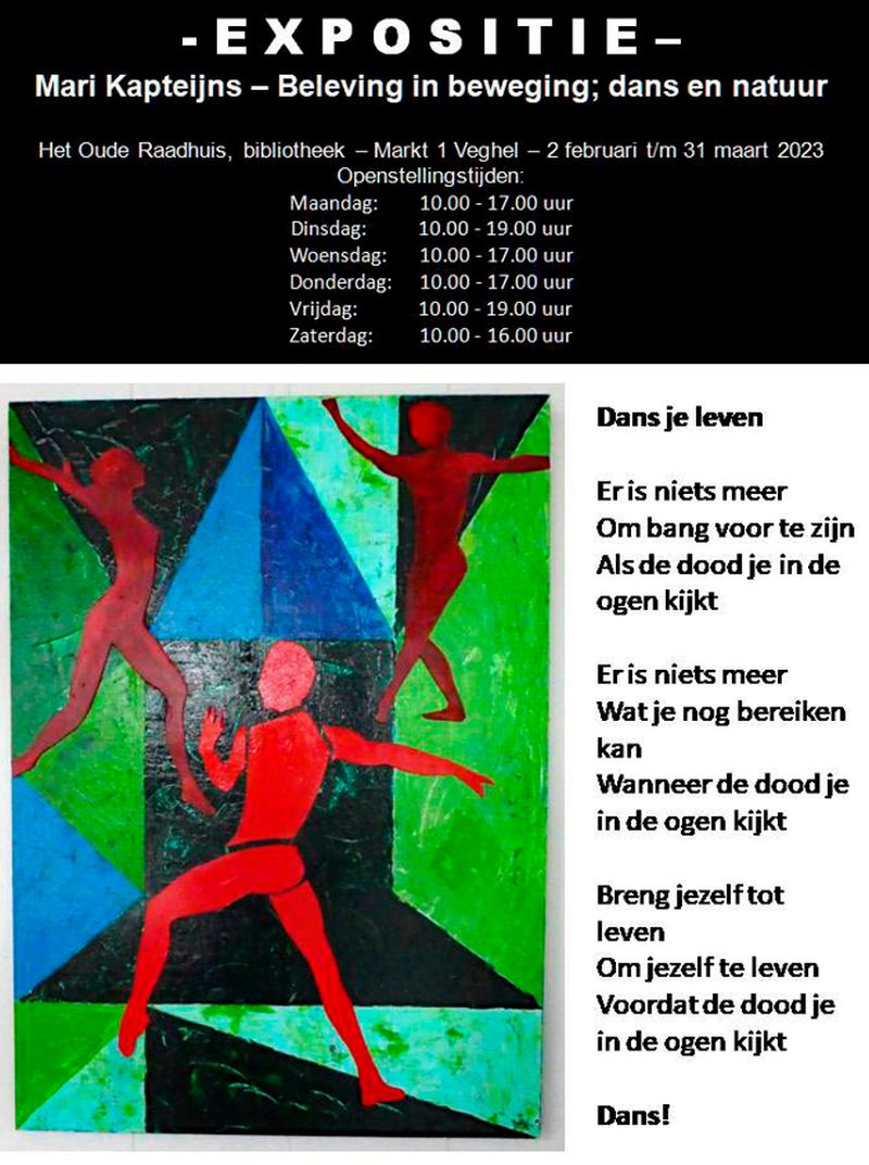 expomarikapteijns4Meierijstad - Corona veranderde de wereld. Bezoek aan het Theater werd onmogelijk of beperkt. De gezellige eetgelegenheden werden gesloten of het bezoek sterk beknot. Dansen kon niet meer, een gemis voor velen en ook voor Schijndelaar Mari Kapteijns.